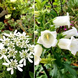 オルレア ホワイトレースフラワー 種蒔きしました♪ カンパニュラ 薄紫を買ったはず? 昨年も 紫色を買ったのに 2年続けて 白 って? どうなってるの〜 紫陽花じゃないから土のせいは〜 無いよねー😂🤍🤍💚