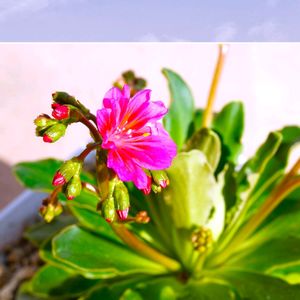 レウィシアはじめての花が咲きました💖 暑さに弱い。雨に弱い。 と聞いてるので、玄関前に置いてるのだけど、日差しが入れば家の影に、雨の予報があればまた玄関前にとあちこち連れ回してます。ほんとは環境的には同じ場所に馴染ませるのが1番なのだけど💦 ちょっと過保護かな?家で屋根あるの玄関前だけだし、室内は暖かすぎるし、仕方ないかも……😅 でも可愛い💕💕
