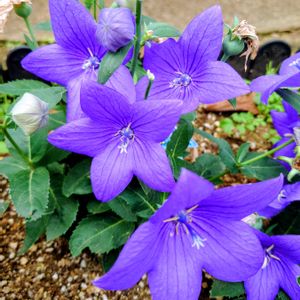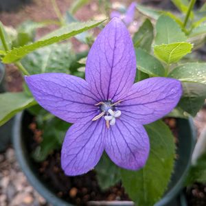 キキョウさん 去年はヒョロっと伸びてしまったので、今年は摘心がんばりました。 色が濃い感じ