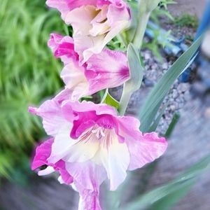グラジオラスが咲きました🩷 植えたままでも毎年咲いてくれます 桔梗はピンクも可愛い色合いです🩷
