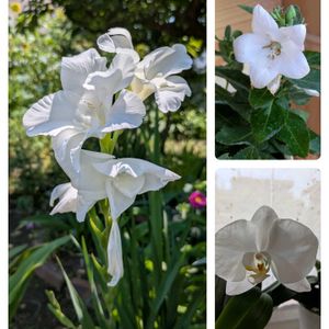 今日も暑いので 白色シリーズ投稿🥰 気持ちだけ涼しくですね👍 ←グラジオラス ↗ききょう ↘お花屋さんでご自由にどうぞと 今年の2月に持ち帰った胡蝶蘭 開花始まりました〜😍