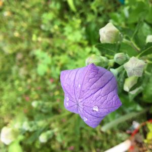 💜桔梗💜 茶花…「和」… そのもの…💜 アングル変えて洋風に撮ってみました🤗 幼い頃、ぷっくぷくの蕾を「パチン❣️」して、 音を楽しんだ事を懐かしく思い出しました🥰