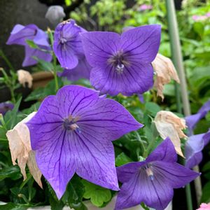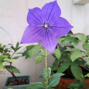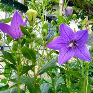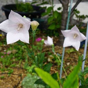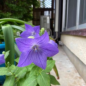 桔梗の1番花が咲きましたよ! 去年買った苗が、今年も元気に咲きました。😊