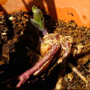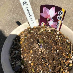 桔梗の上の部分がなくなってしまって寂しかったけど芽がでてきました。 この桔梗、白かピンクかちょっと微妙で去年お花屋さんでじっくりみてたら怒られた😢