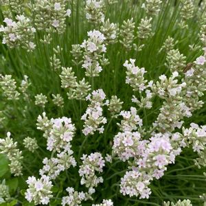 今日のお花 ラベンダー こちらはピンクラベンダー イングリッシュラベンダーと比べると 花数めちゃくちゃ少ない。 3年目だけど ピンクと言うより白? 数本咲いて終わりです。 7/5 📷