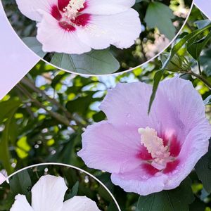 🌺 ムクゲ 🌺 (木槿) 三色並んで 次から次へと咲いてます 人間はこの暑さでヘロヘロだけど 少し元気を分けてもらいます ୧⃛(๑⃙⃘◡̈๑⃙⃘)୨⁾⁾⋆ೄ