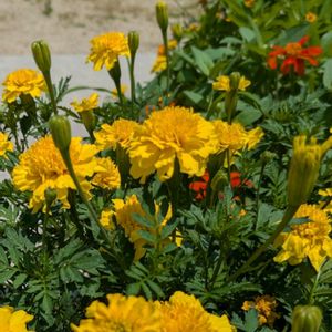 1️⃣ 猛烈に暑かった7月下旬の 🌼 マリーゴールド 🌼 2️⃣ 陽射しが少〜し柔らかくなった今日 まだ元気に咲いてるかなぁと会いに行くと ( ・o˙ )アレ? 🌼 メランポジウム 🌼 にすっかり入れ替わってました