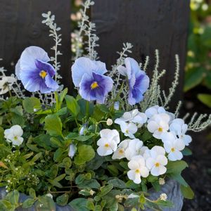 ホームセンターでおっきなパンジーに一目惚れ💙ラベルも何もなかったけど、何か素敵なお名前あってもいいよね!? 可愛い白ビオラと🤍💙 楽しい週末となりますように💕