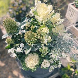 葉牡丹スキミアなどの寄せ植え ホワイト系で寄せてみました🌱