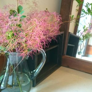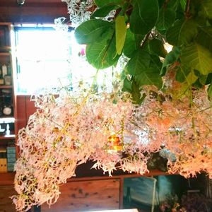 ミリオンベル プチホイップの寄せ植え。ピンク、マーマレードとフィカス プミラ。