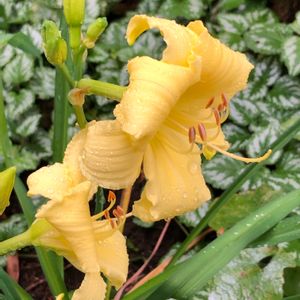 我が家のマンシュウキスゲ? 雨に濡れながら咲き始めました。 この花雨が似合うと⁉️ 想いませんか😅😂