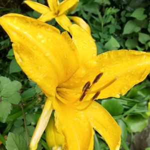 昨日の雨中 近所の商店街で ユリ科ワスレグサ属 ユリのようにキレイな 1日花💛