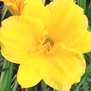はじめまして🎶 ✨マンシュウキスゲ(満州黄萱)✨💛 細長い葉の間から真っ直ぐに伸びた レモン🍋イエローの6枚の花びら✿❀ 夕方開き朝に萎む1日ユリ✨✨ 鮮やかに潔いですね💓💕💛 花言葉 『日々新たに✌🎵』 今日もお疲れ様ですね❤💜