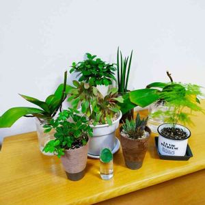はい!注目!! みんな集合写真撮るよ〜 ツンツンした子とかワサワサしてる子とか、ふわふわした子色々だけど😋 並んで並んでぇ〜 あら、ソフォラちゃん🌿いつの間にか2節も新芽を出しててくれた😍 カワイイ
