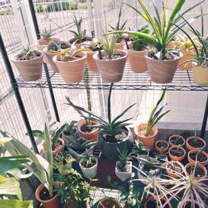 外にサンスベリア専用の棚作ったー🤗 二段でも余裕かなとおもったけど、ギリギリ全部乗ったー🤗 最低気温も上がってきて、やっと全部外に出せた🤗 あとは雨よけ兼遮光のビニールを上につけなあかんけど、今日は疲れたからまた今度🤗