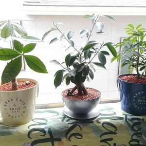 ハイドロカルチャーのパキラとシェフレラを植え替えたー🤗 100均のブリキに入れてたけど、すぐに中が錆びるし水捨てるの大変やったし、根っこにょきにょきやったからねー🤗 一回り大きくなったけど、成長したこの子たちにはちょうどいいね🤗