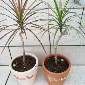 ドラセナコンシンネの根っこがパンパンやったから、大きめのおそろい鉢に植え替えたー🤗