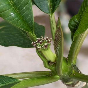 雨は朝であがって、その後は降りそうで降らない☁️ジメッとした1日です🥵 我が家の💚プルメリア💖 昨年はお花をつけなかったんですが、今日発見❗😳これっ❗花芽でしょうか?🧐 今年こそ、お花見れたらいいな🤗💖
