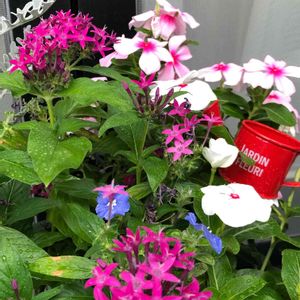 今朝の1枚 ペンタス 寄せ植えのペンタスがまだまだ絶好調😄 本当に長い期間咲いてくれたお花🌸 少し小ぶりなお花になってきたけど、真夏より色味は鮮やかなような気がする。 なによりまん丸に固まって咲く姿がかわいい💕