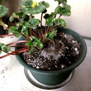 休眠してたシクラメン_(:3 」∠)_ だいぶ葉が展開し始め、花芽も見えてきました(๑╹ω╹๑ )