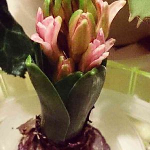 ヒヤシンス開花第1号候補はピンクに決定🎵 楽しみ~(*´-`)❤