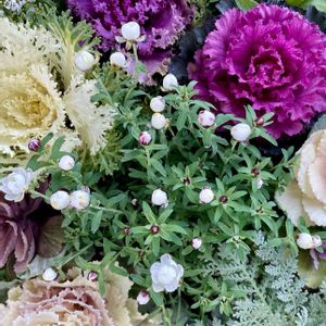 おはようございます 葉牡丹に囲まれて、ハナカンザシの小さな蕾がぷっくり〜(ღˇᴗˇ)。o♡ 🏷金曜日の蕾たち 🏷ちっちゃいものクラブ 参加させていただきます🤍