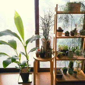 こんにちは〜✨ リビングの窓辺です💚 道の駅で見つけた春ウコンを 植え付けて3ヶ月〜! (左の大きな葉🌿) 可愛いピンク色のお花✿が咲くみたい… 楽しみです٩(๑❛ᴗ❛๑)۶