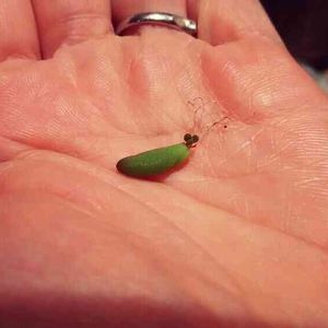 昨夜気づいて複雑な気持ちに(・・;) 増える増えるの子宝草って事がよーく分かりました😅 5㎜位の赤ちゃんが根っこ出してて落ちそうなんです(^◇^;) こうして見るとツノ帽子被って、お辞儀してるみたい(^◇^;) この子の将来はどんな容姿になるのかなぁ