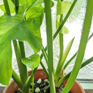 大きくなったセロームちゃん🌿 根元から…ん⁉️クワズイモ⁉️👀 原種⁉️ܾ ܾ 𖥧𓇣𖦥𖥧𖥣右側には新芽も…👶✨ 狩ったままのお鉢でギチギチなので、そろそろ株分け考えなきゃ〜( ;´꒳`;)アセアセ💦