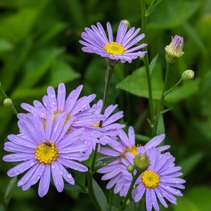 昨年、ヨメナと教えていただいたキク科の花🌼 その後ぐんぐん成長し、150cm位までになっていました! 今年も花が咲き始め、丈はまだ30cm程度ですが、花径が3.5cm位もあります🌼