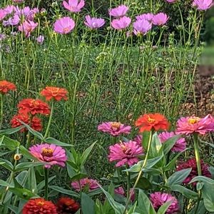 今日のお花コスモス とジニア 春にはゴデチアで楽しませていただいた畑です🤗