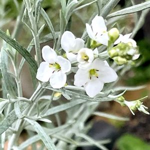 寒さに負けないよ‼︎💪 元気に咲く白花ちゃんたち… 《スライドpic》 ①ハナカタバミ(花酢漿) ②ゴンフォスティグマ🔰 ゴマノハグサ科 南アフリカ原産、枝垂れるように枝を伸ばすシルバーリーフの常緑低木 ③スイートアリッサム 実家の庭先より。 ④リナリア