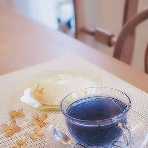 Take a break with herbal tea ハーブティーでホット一息 バタフライピーティー💙 レモングラス入りなので良い香りなの♪ 自家製豆腐がまろやかで美味❣☺️ デザートだゎ♡ 特濃豆乳とにがり1%をカップに入れて、コンロで湯煎(←安全) 又は電子レンジ600wで1分、 170wで様子を見ながら数分 上の部分を食べちゃったのでお皿に逆さに伏せたらビヨーンて広がった😆 柔らかくて美味しぃ〜😋