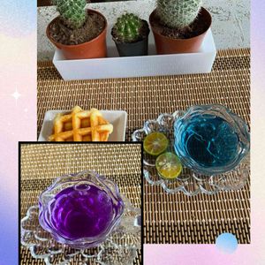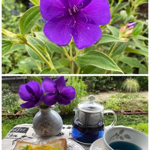 ウチのベランダで初めて咲いた バタフライピー💠でティータイム🫖☕️ シークワーサーで味変して2杯 美味しく頂きました😋 やはり自家製は格別〜😍🤗