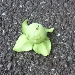ちょっとピンぼけ。柿の赤ちゃん。落ちてしまったのね。