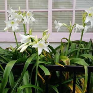 隣りのおウチのインドハマユウ(クリナム、アフリカハマユウ等)が咲き始めました! 冷たい雨が降ってるけど頑張れ! でもなんで今頃?