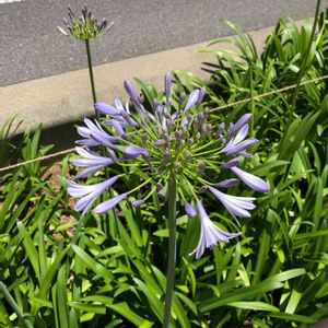 6/17㈬④ アガパンサス (紫君子蘭:むらさきくんしらん) 遊歩道で開花してるのを見つけました🤗💜💜この場所だけでした。 後はうちのマンションと同じ、薄紫色の蕾が姿を表しましたがまだ開きません😅💧