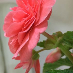 ミニ薔薇✨ベゴニアフォーチュン✨ 朝起きて ベランダの窓を開けて 植物達を眺めて大きく深呼吸して1日がはじまります。 ベゴニアフォーチュンが日に日に大きく華やかになり、私に向ける フォーチュンビームがすごい! 優しいサーモンピンクで花の気を思いきり向けてくれます✨それがとっても可愛らしい♡♡♡ミニ薔薇にも負けないよ と見て見てアピール してくれてます😊 2つ前から投稿しているベゴニアフォーチュンです!