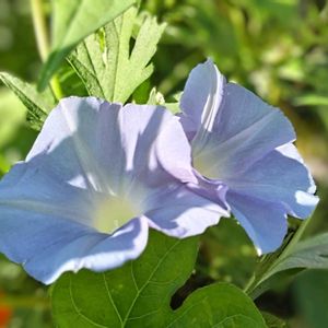 零れ種から咲いた アサガオ達です 2枚目 朝陽を浴びて綺麗でした☀️💙