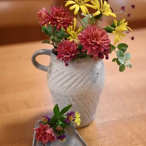 庭に咲く花たちを花瓶に生けてみました 師走で何かと忙しい時期ですが、ちょっとしたことで心豊かになりますね🌼