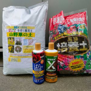 好きなんだけど、周りに聞いてくれる人がいない土と肥料のお話(*´-`) 去年から使い始めた山野草の土 前から使用しているばらの液体肥料 今年買ってみたHB‐101+バットグアノ入り高級培養土と バイオスティミュラント活力液 エックスエナジー 山野草の土は 硬質鹿沼土 小粒 桐生砂 小粒 赤城山 軽石 珪酸塩白土 が入っています。 2枚目が乾燥状態で、3枚目が濡れた状態です。(化粧砂代わり) お安いわりに品質が良く、培養土には珍しい珪酸塩白土(ちょっとお高め)が入っています。 多肉には乾きすぎるので、赤玉土などを混ぜて使用しています。 3,000円以上で送料無料になり、自宅まで配送業者の人が運んでくれます。 25リットルしかないので、置き場がないと買えないのが難点(笑) ダンボール箱に入って届くのですが、厚手で丈夫なのが爪とぎに良いらしく猫のお気に入り。 4枚目は顆粒HB-101+有機元肥入り 高級培養土 お安い花用培養土の棒が気に入らないので買ってみました。 赤玉土・鹿沼土・有用微生物入たい肥・ ココピート・バーミキュライト・パーライト・ ゼオライト etc と書いてありました。 etc.🤔 . ←がないと意味が変わるのでは?🚗 とくだらない事を考えながら書いています。 思ったよりも棒が入っていました。(お安い培養土とは雲泥の差) 竹入りのお高い堆肥も気になりました。 ばらの液体肥料 ビタミン9種類 ミネラル9種類 アミノ酸18種類 糖類6種類 え?類って漢字こんなだったっけ? いっぱい入ってるからなんか良さそうで使ってるだけの液体肥料。 茶色く濁ってて自然な感じです。 エックスエナジー バイオスティミュラント成分(ビール酵母抽出物)・酢酸カルシウム・アミノ酸・マルチミネラル・ビタミンB群 活力剤カテゴリーの新商品。 植物本来の力を引き出すとか底上げするみたいなイメージ。 暑さ寒さや、日照不足にも負けない体づくりな感じでしょうか。 温暖化の影響で年々暑くなり、植物にもきつい気温になっています。 日本の夏の気温を下げるか、植物に耐えてもらうかの二択を迫られた時、どうしても後者を取りがちです。 少しでも助けになればと買ってみました。 頑張れうちの植物たち٩(๑`^´๑)۶