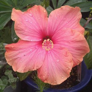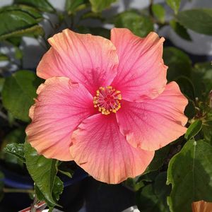 ただいま〜👣 窓越し日向ぼっこ中の キャバレーブリーズ🌺ハイビスカス🌺 あっ💗 はじめまして~ 今年の新入りさん サマー・ブリーズ🌺 何度も蕾が落ちて……9月末植え替え 根が落ち着いたのか 今頃咲き始めました ピンク色のアドニスがおつ枯れ様になったので ピンク色系を探し花写真を見て購入 名札📛を見たらキャバレー??なんで?? 実際咲くと 中央に広がるピンク色の光沢感が✨キラキラ ふりふりもオレンジ色系に華やかで 可愛いらしい