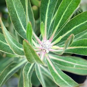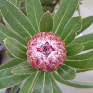プロテア ピンクアイス挿し木 脇から新芽が出てきました。 こんばんはm(_ _)m 朝晩は しのぎやすいけど昼間が30度で 暑いです。