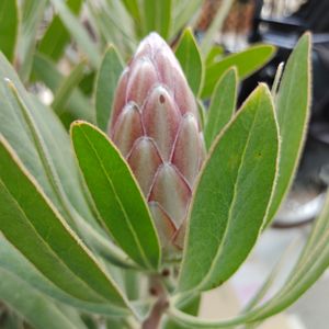 プロテア ピンクアイス 去年 挿し木したのに べラボンで マルチングして何とか育ってます。