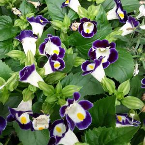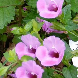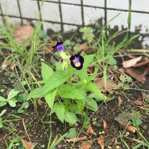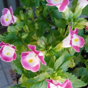 レトロな感じ・・・💦 ハナウリクサ(トレニア)かなです❔ 花はトランペット形 くちびるの形に似た愛らしい花🌼 なんですが2色づかい❤💛じゃないですね 分かる方宜しくお願い致しますね✌🎵