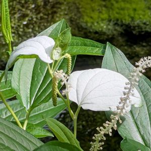 姫路に行ってきました。 あずきミュージアム のお庭に清々しいハンゲショウが白く色付いていめした。