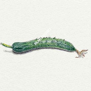 20200721 色鉛筆でデッサン キュウリの苗の茎をダンゴムシ食べられたのと、昨日は35.9℃酷暑でキュウリが枯れてしまいました、なっていたチビキュウリ!