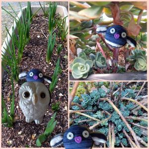 こんばんは🌝 今年最後のフクロウ祭間に合って良かった〜_( -"-)_セーフ! 今日は一応晴れでしたが日射しが弱かったです😣 ←プランターの水仙とムスカリは元気に伸びて来ました⤴️ ↗子株を外した七福神さんにまた次の子株が育ってます🌱⤴️ ↘地植えのミセバヤに新芽がいっぱい🌱🎶 この新芽可愛いですよね💓 そしてまつぴよさんのフクロウちゃんと我が家の白いフクロウちゃんです🦉🦉