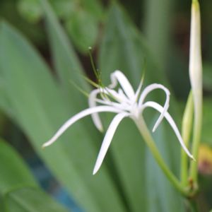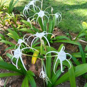 スパイダーリリー 親球根から出来た子球根から花が咲いてました。 仕事行く前に咲いてるのを見つけてビックリ✨😁 翌日には少し遅かったよ😭 花がピッとしてないの 🏷️白い水曜日 🏷️白い貴婦人✨ 🏷️白い恋人達