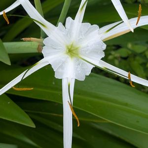 こちらも、週末散歩🚶♀️で 出会った花 ヒメノカリス・リットラリス 蜘蛛の足の様に伸びたのが花弁で 真ん中のアサガオの様なのは 副花冠だそうですよ。 そのユニークな花姿から 別名スパイダーリリーとも 呼ばれています🌸◦° 科名:ヒガンバナ科 属名:ヒメノカリス属 別名: スパイダーリリー